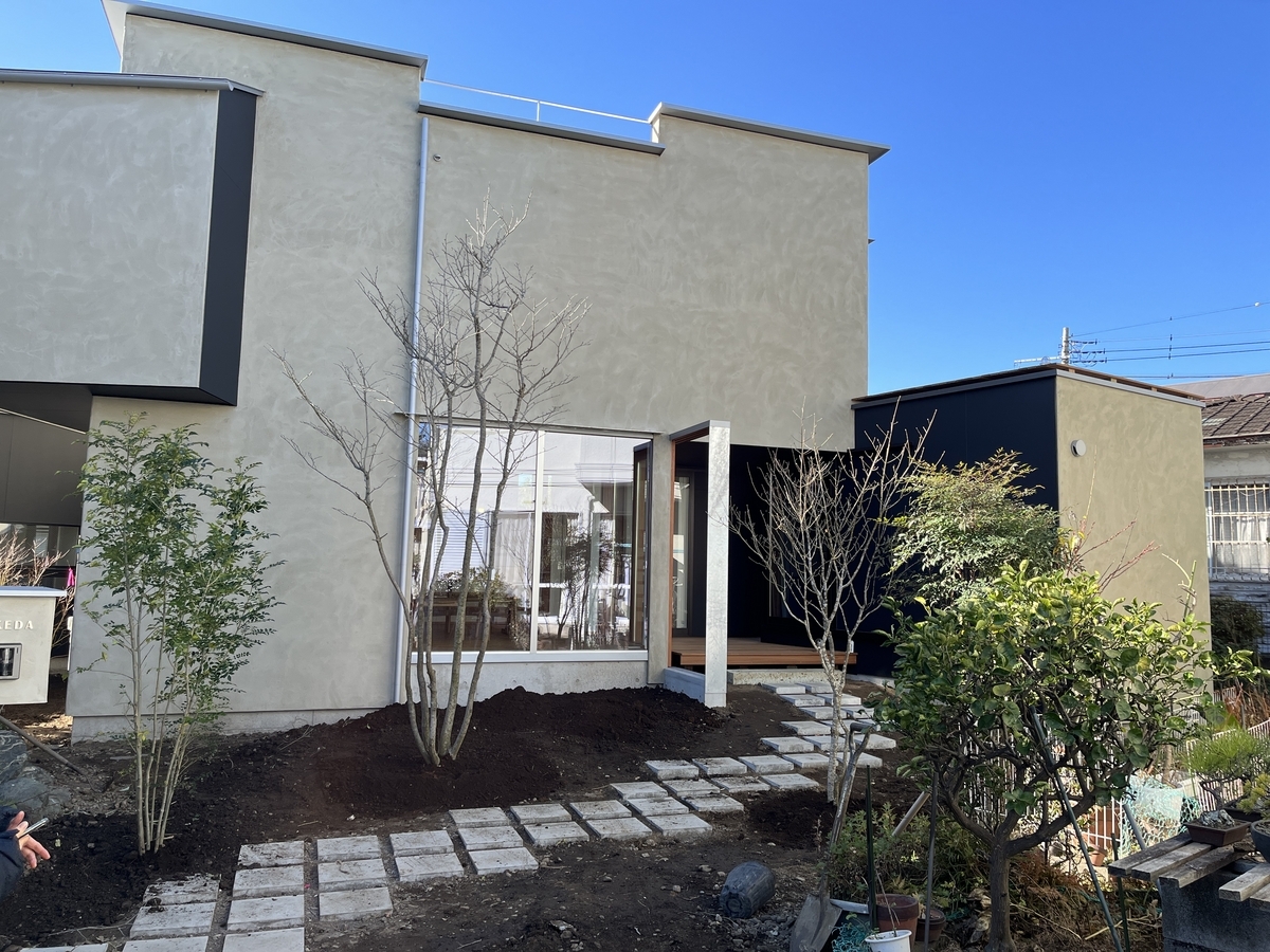 引渡し日に植栽屋さんに入ってもらい木を植えてもらいました。